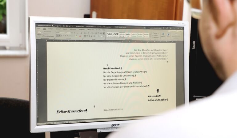 Sind Ihnen nicht alle Adressaten bekannt oder soll der Trauerfall einem größeren Personenkreis bekannt gemacht werden, empfiehlt sich eine Anzeige in der regionalen Tageszeitung. Auch hierbei unterstützen wir Sie von der Gestaltung bis zur Anzeigenschaltung. Das Gleiche gilt selbstverständlich für Danksagungskarten oder Danksagungsanzeigen.