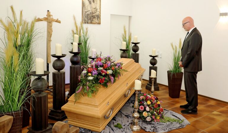 Für ein persönliches Abschiednehmen haben wir auch einen Abschiedsraum für Sie eingerichtet. Hier können Sie sich ganz persönlich verabschieden – mit der Zeit, die Sie brauchen, und zusammen mit den Menschen, die Sie gerne dabeihaben.
